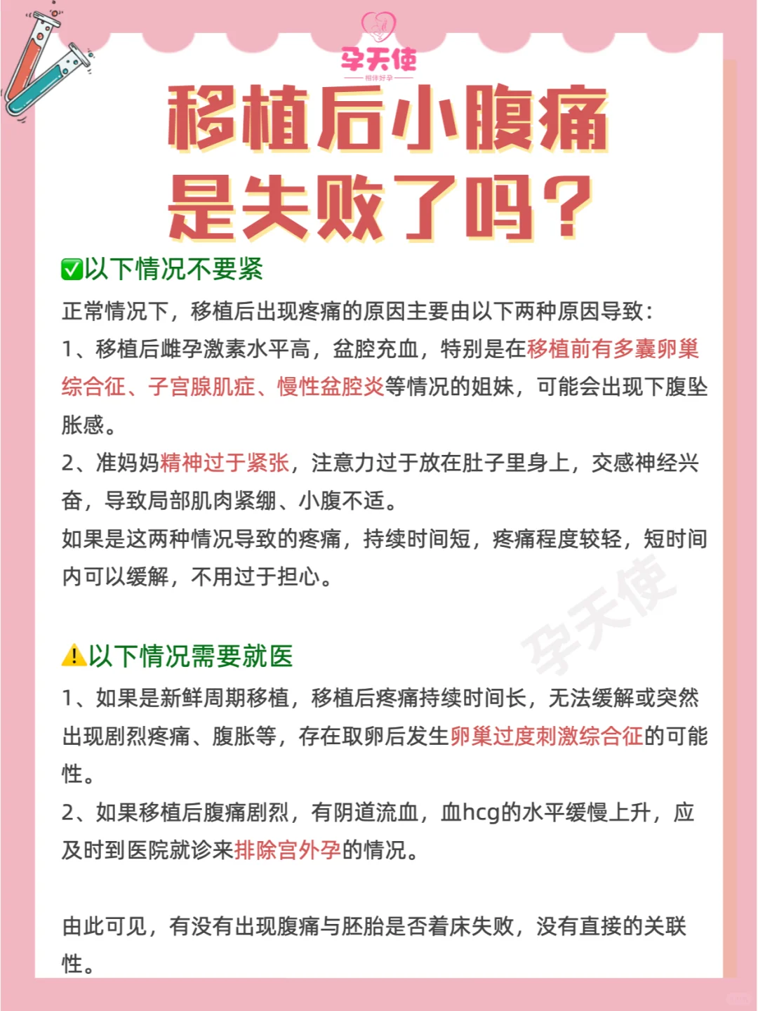有很多姐妹在移植后,有感觉到自己的肚子疼、不舒服的症状。大家都不知道出现这些症状是不是正常的,是不是移植失败、甚至担心发生宫外孕。