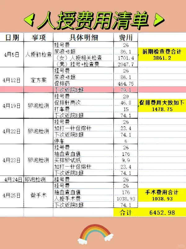 我今天刚做完人授,前前后后也花了大概6000,不知道能否成功