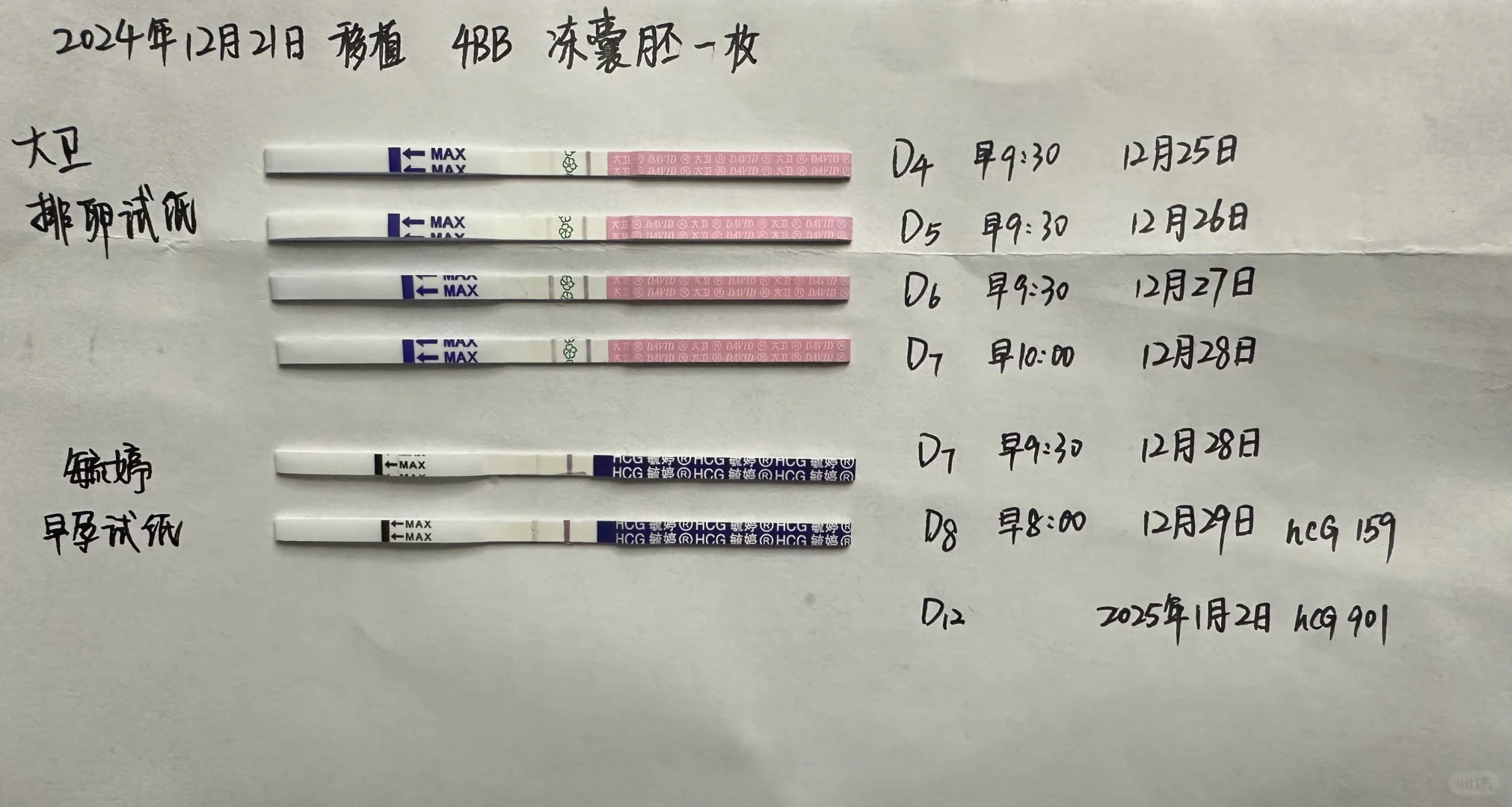 2024年12月21日移植了一枚4BB囊胚,看了小红书说排卵试纸比