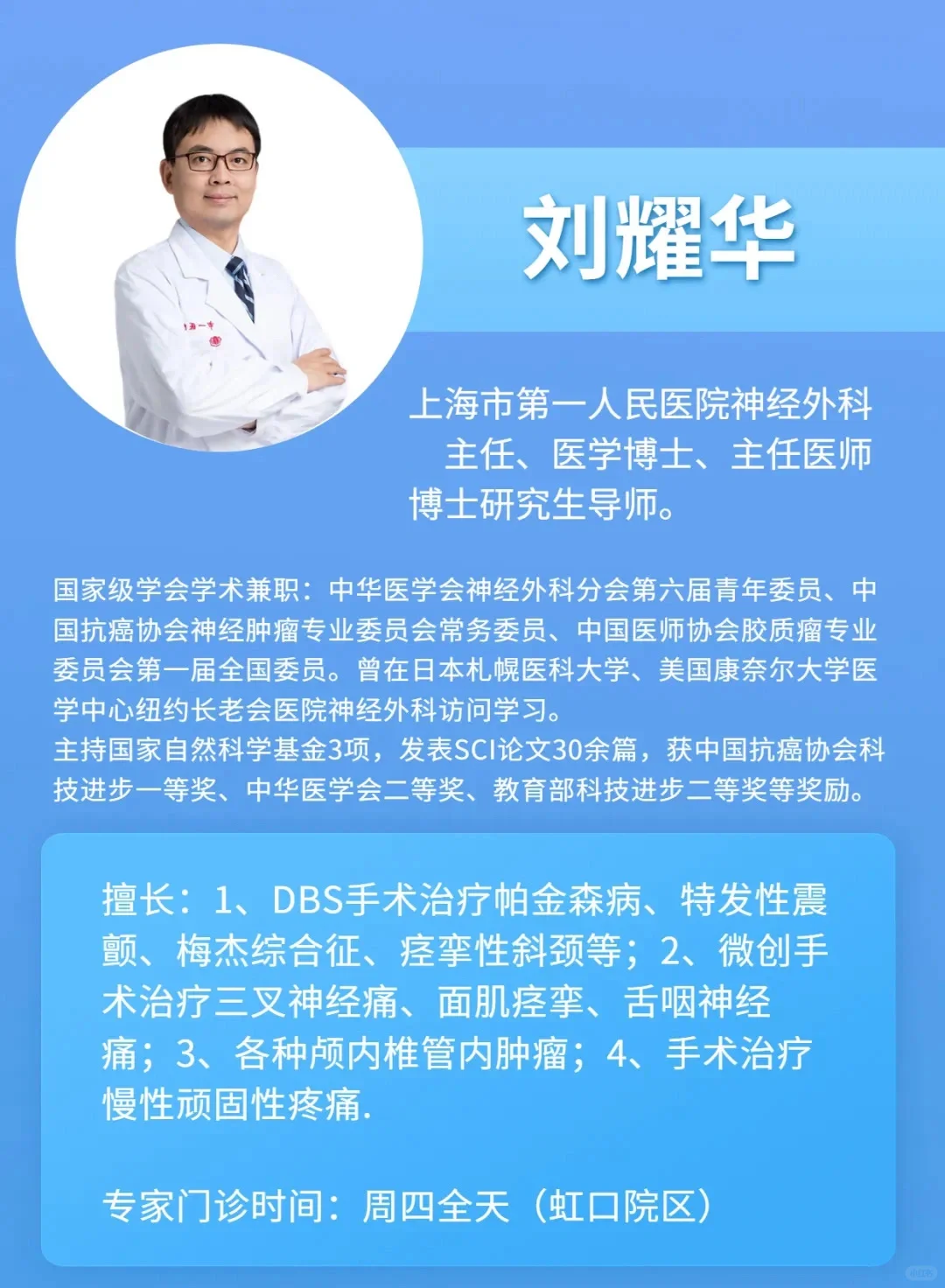 专家门诊时间:周四全天(虹口院区#医生简介 #医院工作日常 #自我介绍 #神经外科 #神经外科医生 #记录我的工作日常