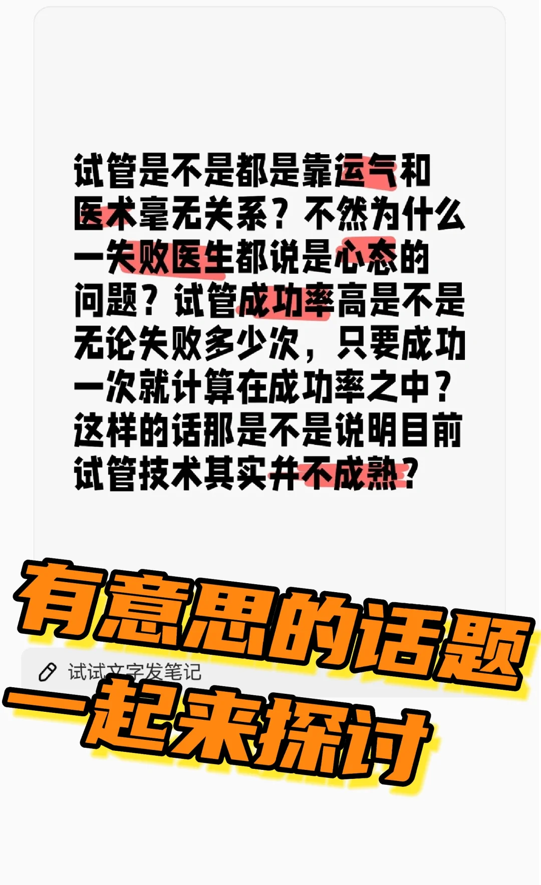 ”了。为什么还有不成功的?因为这里还有很多未知的奥秘需要我们去探索,从这个角度来看,也可以说这个技术还不够“成熟”,还要继续不断努力。试想,即使种庄稼,种子种到地里也不能都发芽,也需要科学家去研究怎么不断提高产量,对吗?那么在试管婴儿这个过程中,我们医生能做什么呢?首先我们要准备优质的种子,这里包括精子、卵子和胚胎(促排卵、取卵、授精、培养),其次,我们要准备土地和适合种子生长的环境,包括准备子宫内膜和母体的其它因素,第三步,把种子种到子宫里,也就是胚胎移植(撒种),然后把肥料上足(黄体支持),最后,种子能不能发芽,就要看种子的“本事”了(这也可能是大家说的“玄学”),我们和大家一样,盼着“开奖”的那一天。这里的每一步都需要一个团队的努力,每一步的提高,都需要整个团队的探索。我是生殖医生,怎么促排卵是我的专业,怎么能为每一位来找我的求职者促出更优质的卵,是我奋斗的目标。这里,确实有很多专业问题,细节问题,需要我们医生去观察,去发现,去探索。这也许就是医学的魅力,活到老,学到老,干到老。促排卵,永远在路上,做试管婴儿,永远在路上。……
