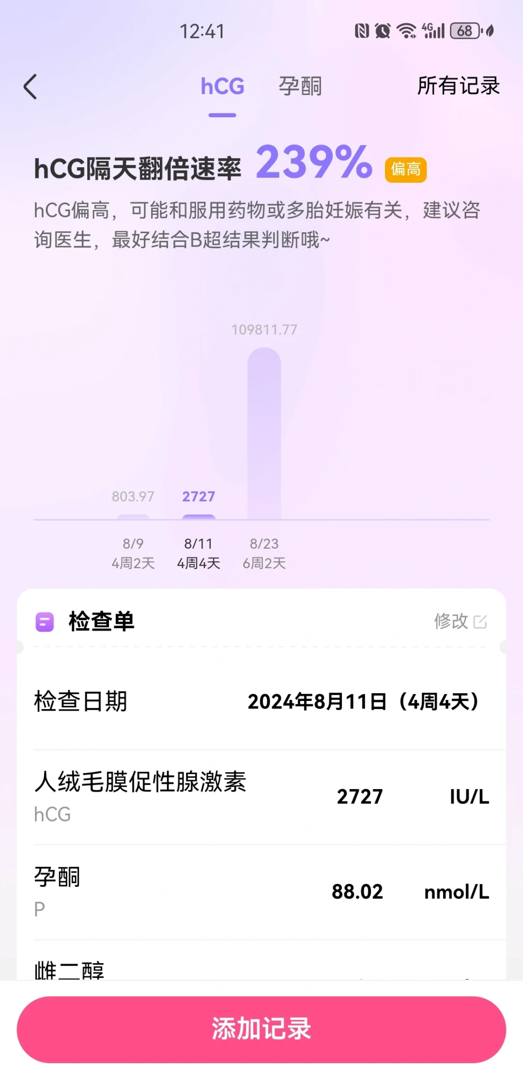 8. 8.11抽血hcg翻倍239%