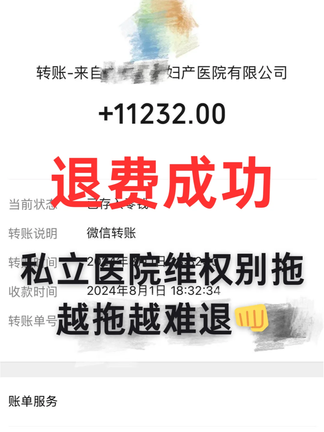 像她就是踩了不会维权的坑。对付私立医院诈骗,要一击必中,否则后面比较难处理,本来可以全额退,最后可能只能退一半。找到我之后,在我的全程指导下,医院一分不少全部退回!